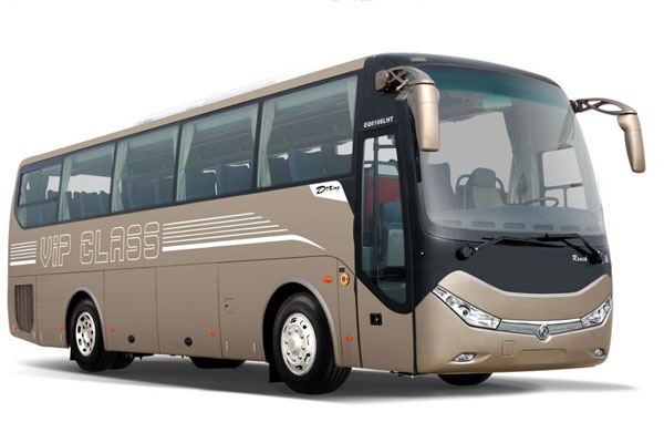 55座大巴出租;东风超龙EQ6123LHT客车,产品造型前卫大方,使用全承载车身,长12000mm,宽2550mm,高3820mm,乘坐容量为24-61人。搭配整幅遮阳帘、DS910B天窗、7寸彩屏倒车显示系统、灭火器等设施,乘驾舒适,安全可靠。