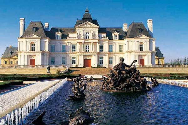 城堡内美景天成、花香宜人。这里的每一处雕塑、每一扇门窗、每一座屋梁都极尽艺术美感和文化气息。那种繁杂着的华美、立体着的精致、张扬着的绚丽无时无处不在提醒你:你看到的不仅是欧洲经典的建筑,更是一个鲜活生动的生命。清澈的人工河流环绕在古堡周边,绿树、草坪、葡萄园、花圃将美丽的拉斐特城堡装扮得生机盎然。容纳近万人的酒文化广场,金碧辉煌的宴会厅,豪华的特色包间是举行大型演出活动、酒会、展示会、高档会议和中西式婚礼的理想场所。