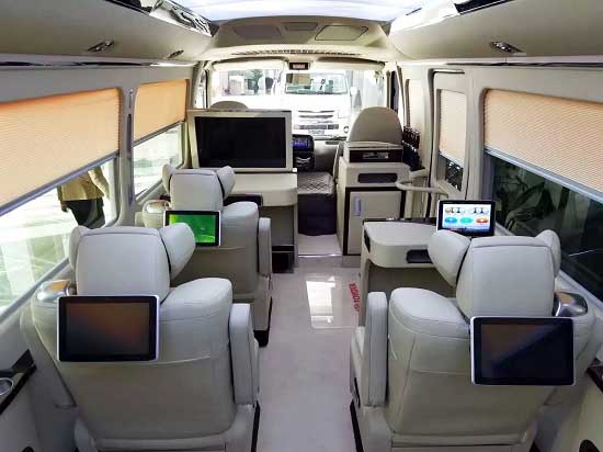 丰田考斯特13座改装商务车是所有的商务车中我最喜欢一款,这一款车从外形的设计上来说有这样几款不同的设计,上坨下白色的高级版商务车,香槟金色的特别行政版商务车,米黄金色的豪华版商务车以及白色的尊贵白金版商务车。这几款车中销量最高的是米黄金色的豪华版,白金版当然是最出色的,可是好看的车必然也有好看的价格,所以丰田考斯特13座改装商务车多是在豪华版的基础上进行改装设计。