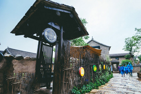 古北水镇的售票口并不在最外面,而是要走过大概1公里左右的古城沿街的石板路,沿途就已经是古色古香,路上还有一个小巧的梅花鹿园供游客观赏。