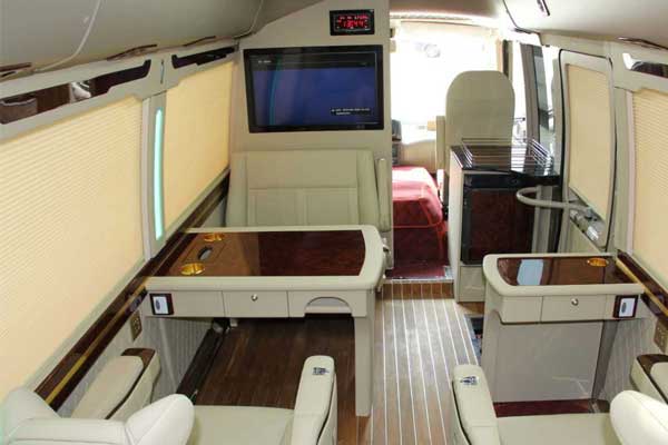 在内饰的规划上是一切规划中最值得称赞的部分。丰田考斯特改装商务车在内饰的改装项目有很多,在座椅的改装上,可以挑选真皮航空座椅,360度可旋转首长席,原装进口的埃尔法座椅。在地毯的挑选上,通道地毯和游艇木地毯也是各具风格值得喜爱。窗布的改装规划和车内的多彩灯火彼此衬托打造舒适温馨的搭车环境。