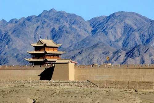 由额济纳旗向西南行进,可到达嘉峪关。嘉峪关关城在嘉峪关市区西南6公里处,地势险要是长城保存最完整的一座雄关。登上关城,一望无际的戈壁和延绵无尽的祁连山就出现在眼前,景色蔚为壮观。