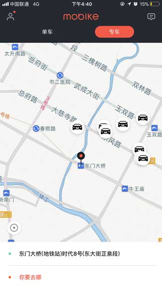 用户使用最新版摩拜单车APP,即可呼叫首汽约车。资料图片