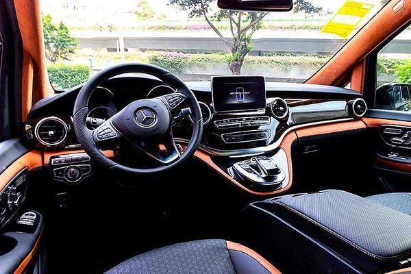 走进奔驰V260内饰可以清晰看到奔驰260,旋转按钮。成对坐格局,商务交谈便捷自如。