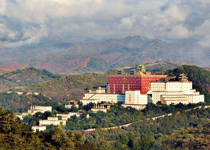避暑山庄承德市区北部。为清朝皇帝消夏避暑和进行各种政治活动的地方,是中国现在规模最大的皇家园林。建于清废熙四十二年(1703年),乾隆五十七年峻工(1792年),历时89年。占地544万平方米。宫墙长达9322米。园内分宫殿区、湖区、山区,内有各种风格的园林建筑126处。康熙、乾隆将山庄内景点亩名72处。兼有北方雄奇和南方秀丽园林艺术之精华。 外八庙