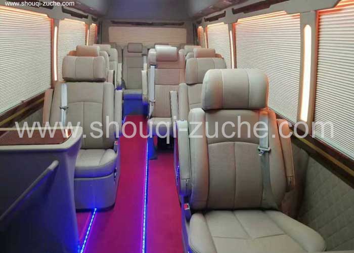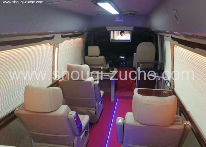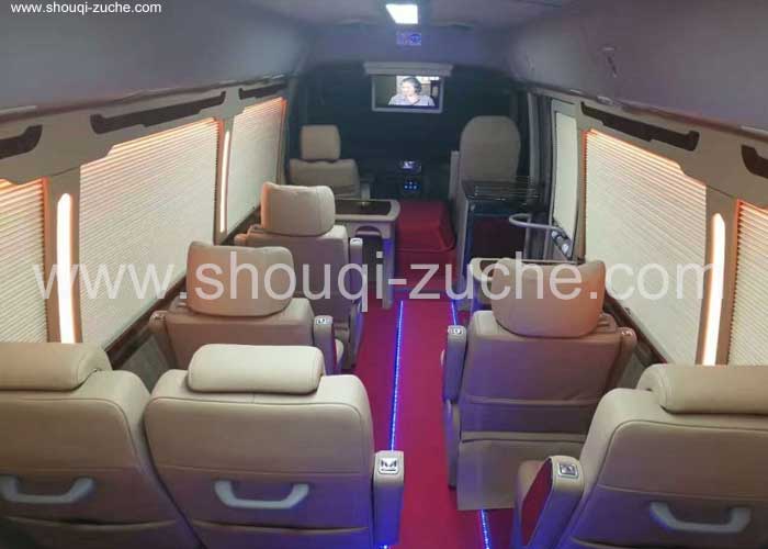 咱们还可以加上金标,让原本中庸的车身变得高贵华丽,然不失纯朴!在内饰方面所做的文章就更加足了!里面咱们可以把所有的东西更换一个遍,让他再也找不到原车内饰的影子,这里面包含了丰田考斯特的操控台内饰,顶棚、侧壁、地板、座椅玻璃、窗帘、音响、灯光等等一些列的内容!座位数同样也发生了不小的变化,根据咱们实际的用途,咱们可以划分为丰田考斯特通勤版车,一般所包含的座位数为丰田考斯特23座、20座 19座像这一类的车子一般改装都相对来说比较简单一些,操控台一般都加装一个导航DVD系统,附带着来一个倒车影像。主要是司机操控比较方便,毕竟这个车子还是比较长的,这样就提高了倒车的安全系数,顶棚上呢一般加装一个19寸的电动DVD显示器,方便在上下班的路途过程中看看电影播放一下公司的最新资料。地板方面一般采用进口地板革,主要是提高底板的耐磨性,再就是美观更方便司机打理,如果遇到雨雪天等乘客下车以后,直接可以用拖布擦一边就可以弄得干净利索了。座椅方面一般都比较简单弄一个布艺座套打上公司标志就可以了!丰田考斯特商务接待版,一般是指的丰田考斯特16座、17座、15座、14座的车子,这一类的接待车子相对来说就比较讲究一些啦。这类丰田考斯特改装的宗旨是豪华但不失大气!一般是政府机关,企事业单位的最爱。