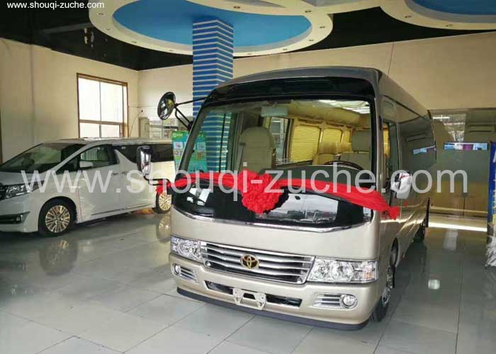 COASTER柯斯达 超VIP尊贵版,在超VIP版基础上为打造舒适的办公环境而诞生的旗舰 型豪华车,丰田 考斯特豪华版外观颜色为米黄金色,高贵的米黄色金属漆配备改装的彩色中线,外观上就给人以档次十足之感。此外,丰田 考斯特还贴心的配备了电动踏板,方便乘客的上下车需要,考斯特窗帘可以选择豪华的布艺窗帘或舒适的百叶窗帘,百叶窗帘可以选择是手动的还是自动的,加装窗帘装饰框等,更加贴合顾客的需求;地毯可以选择通道地毯或全车加装木质地板,选择自己理想的风格。