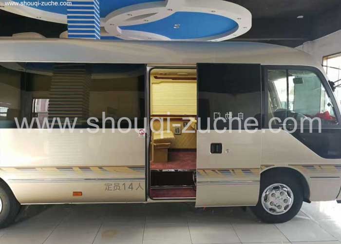 咱们还可以加上金标,让原本中庸的车身变得高贵华丽,然不失纯朴!在内饰方面所做的文章就更加足了!里面咱们可以把所有的东西更换一个遍,让他再也找不到原车内饰的影子,这里面包含了丰田考斯特的操控台内饰,顶棚、侧壁、地板、座椅玻璃、窗帘、音响、灯光等等一些列的内容!座位数同样也发生了不小的变化,根据咱们实际的用途,咱们可以划分为丰田考斯特通勤版车,一般所包含的座位数为丰田考斯特23座、20座 19座像这一类的车子一般改装都相对来说比较简单一些,操控台一般都加装一个导航DVD系统,附带着来一个倒车影像。主要是司机操控比较方便,毕竟这个车子还是比较长的,这样就提高了倒车的安全系数,顶棚上呢一般加装一个19寸的电动DVD显示器,方便在上下班的路途过程中看看电影播放一下公司的最新资料。地板方面一般采用进口地板革,主要是提高底板的耐磨性,再就是美观更方便司机打理,如果遇到雨雪天等乘客下车以后,直接可以用拖布擦一边就可以弄得干净利索了。座椅方面一般都比较简单弄一个布艺座套打上公司标志就可以了!丰田考斯特商务接待版,一般是指的丰田考斯特16座、17座、15座、14座的车子,这一类的接待车子相对来说就比较讲究一些啦。这类丰田考斯特改装的宗旨是豪华但不失大气!一般是政府机关,企事业单位的最爱。