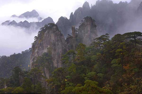 黄山雄踞风景秀丽的安徽南部,是我国最著名的山岳风景区之一。黄山集名山之长:泰山之雄伟,华山之险峻,衡山之烟云,庐山之飞瀑,雁荡山之巧石,峨眉山之清凉。明代旅行家、地理学家, 徐霞客两游黄山,赞叹说:“登黄山天下无山,观止矣!”又留“五岳归来不看山,黄山归来不看岳”的美誉。更有“天下第一奇山”之称。可以说无峰不石,无石 不松,无松不奇,并以 奇松、怪石、云海、温泉 黄山四绝著称于世。其二湖,三瀑,十六泉,二十四溪相映争辉。春、夏、秋、冬四季景色各异。黄山还兼有“天然动物园和天下植物园”的美称,有植物近1500种,动物500多种。