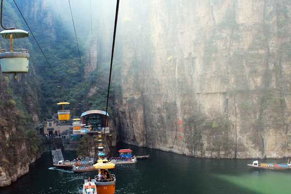 水作青罗带,山如碧玉簪。 乘船游龙庆峡,仿佛是用手徐徐展开的一轴山水长卷,漓江风韵扑面而来,游人无处不在画境中。那山,群峰屏列,逶迤嵯峨,随形寓意,依貌称名,大自然的天道沧桑、鬼斧神工造化了镇山如来、钟山、凤冠岛、东大寨、月亮湾等30余处景观,附丽了人的感情,山水就有了人的性格和灵性。那水,碧波清流,九曲萦回,绿得氤氲,柔的纤缱,拓山光鸟影于怀,纳长天白云在胸。山回水转,水贯山行,可谓"崖出疑无路,云开别有天"。 龙庆峡的盛夏,气候凉爽,空气清新,气温低于北京城区6度,甚至比承德避暑山庄还低0.8度。而隆冬,结冰期较长,异常寒冷,于是,这里就诞生了冰灯艺术的奇葩,峡谷,一个冰雕玉砌的世界,一个北国冰雪的乐园。