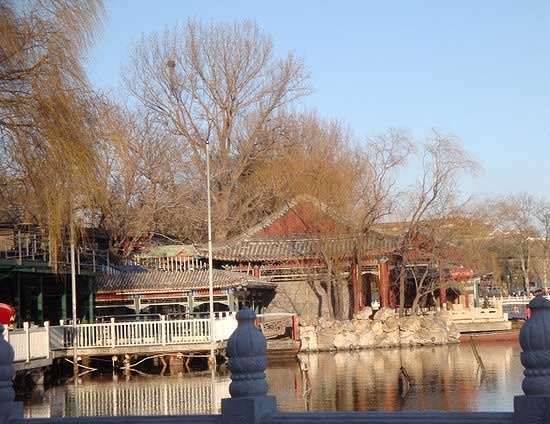 从北海公园的北门出来,横过马路,从荷花市场进入了什刹海景区。冬日下午的什刹海游人不是很多,但什刹海冰场滑冰的人很多,您能感受到这里旺旺的人气。