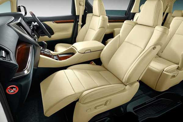 Alphard提供了7个座位。其中驾驶座具有8向电动调整、附3组记忆功能的电动座椅。最舒适的二排位置,搭载4向电动调整Ottoman头等舱座椅,拥有三面向头枕、独立扶手、扶手置杯架、多功能折叠桌,以及椅背最大78度仰角;前后共拥有450mm滑移长度与高度脚踏垫设计。首排与二排独立系统的影音播放器,让驾驶员与乘客都能拥有专属的影音主控权,在前座驾驶使用卫星导航的同时,后座乘客仍可享受视听娱乐。