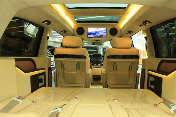 奔驰V260L改装高顶隔断7座商务车车顶设计了双景超大电动天窗,白天可大大增加车内的采光,夜晚可以享受梦幻的星空。奔驰威霆豪华商务车动力很强劲,采用了2.0T的涡轮增压发动机,最大功率211马力/5500rpm,最大扭矩为350N·m/1250-4000rpm。奔驰威霆豪华商务车,外观低调,内饰高调,时尚且不缺乏优雅,如此座驾,能够与您匹配,岂不乐哉?