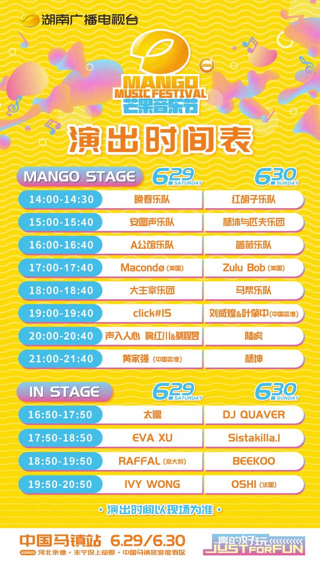 2019马镇芒果音乐节演出详情:
