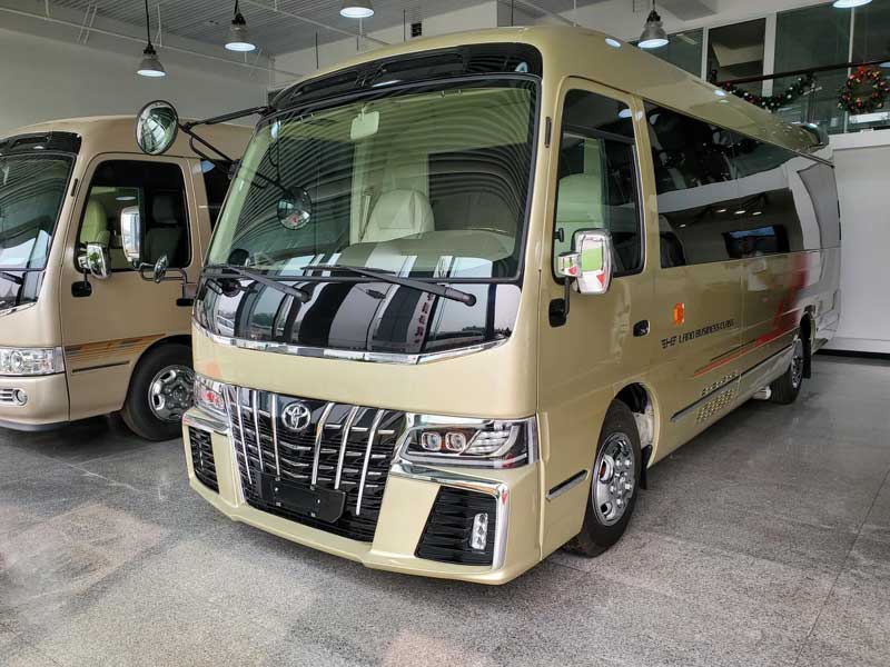 丰田考斯特车队分为11座定制版、16座高级版、20座行政版、23座旅行版车队,从外观的设计上来说,丰田考斯特11座商务车、16座商务车、20座商务车高级版的丰田考斯特车身颜色为上驼下白色,车窗玻璃为推拉玻璃,车门为折叠门。而豪华版的考斯特改装商务车,在这三处是完全不同的,丰田考斯特豪华版商务车为米黄金色,密封玻璃航空外摆门。丰田考斯特改装商务用车接待用车多选用米黄金色豪华版,更能够衬托我们商务用车的高贵之处。
