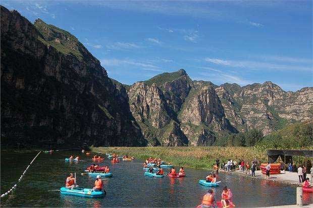 野三坡的美丽还在于它的山水相间,形成了拒马河景区。拒马河连接野三坡和百里峡,拒马河是华北地区唯一一条没有被污染的河流,拒马河由山涧的泉水汇流而成,泉水清澈,入口甘甜。在这里,游客们还可以享受到在河面划竹筏的乐趣。当地人会在一些河水比较平缓的地方扎一些竹筏,游客们可以亲自尝试一下那“小小竹排江中游,巍巍两岸青山两岸走”的意境。竹筏的租费一般是10元/小时/人。