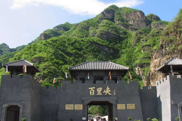 百里峡景区离野三坡12公里,座落在苟各庄火车站旁,百里峡的自然风光是由形如鹿角的三条峡谷——十悬峡、海棠峪、龙潭谷组成的。峡谷属于典型的嶂谷喀斯特地貌,山峰陡峭、线条凌厉、奇峰怪石、气势粗犷。谷底流水潺潺,再加之峡谷内多处瀑布如白龙、银练,一泻千丈,极易让人产生类似于世外桃源的遐想。百里峡的门票为98元/人,百里峡的饮食特色与野三坡景区有相似之处---骑马、烤全羊、篝火晚会。推荐酒店宾馆:百里峡海天假日酒店,农家小院:明珠农家小院、山庄农家小院、农家乐旅馆、百里峡学生之家。
