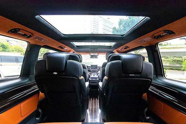 改装之后细节之二表现在全景天窗,可以很好的享受到奔驰V260内饰带来的空间感。这样的自然光线比内饰灯光更加柔和。
