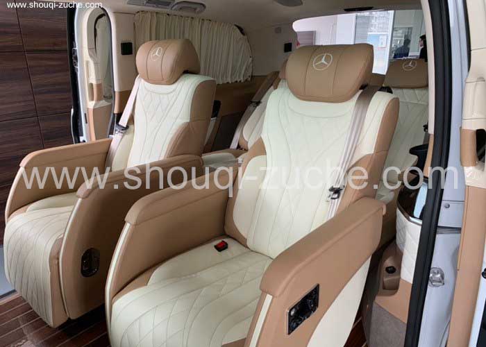 奔驰V260改装车,整体设计具有一定的延续性,新车采用了全新奔驰家族化前脸设计,双横幅前进气格栅搭配全LED大灯,整体风格庄重而肃穆。奔驰V级采用了短前悬设计,侧面线条平直,给人以四平八稳的视觉效果,比较符合V级的定位。尾部整体设计方正,在后挡风玻璃以及牌照架处使用了少量倾斜线条,增加了活力。尾灯同样采用了LED光源,点亮后辨识度与观感都比较出色。